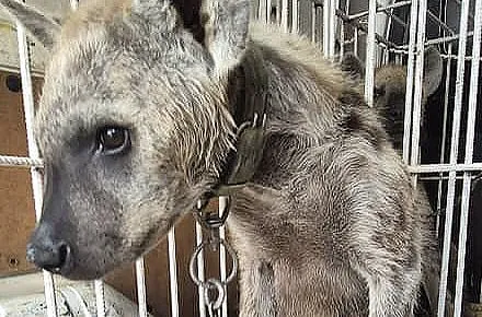 EAGLE Network, Africa Hyenas are targeted by the illegal trade as mystical animals for black magic. In Senegal, three traffickers kept two young hyenas in small cages and restrained them with chains, until rescued.